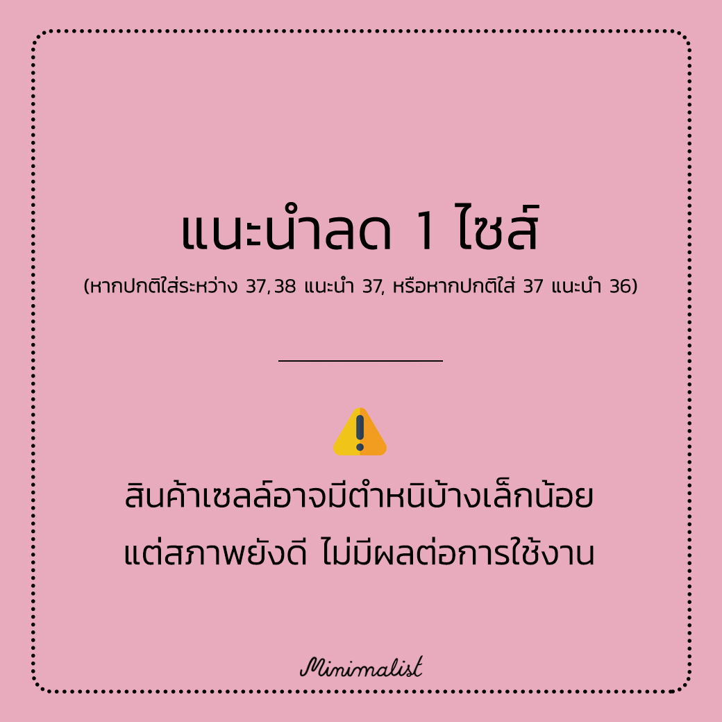 – แนะนำลด 1 ไซซ์ หากหน้าเท้ากว้างมากหรือเนื้อเท้าเยอะแนะนำไซซ์ปกติ