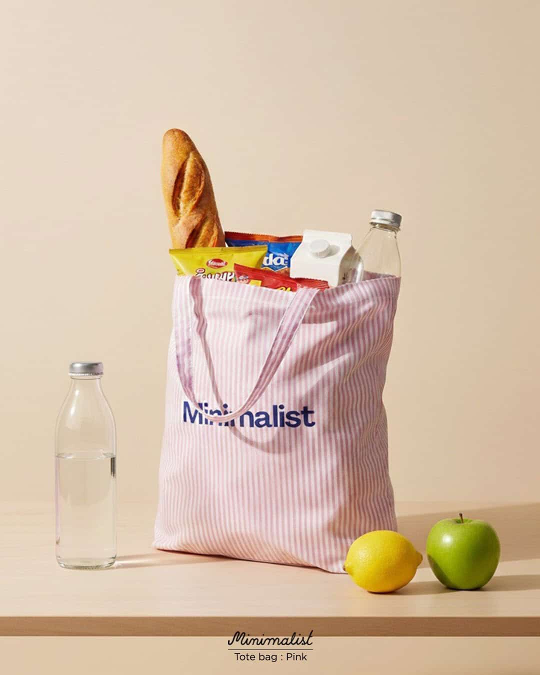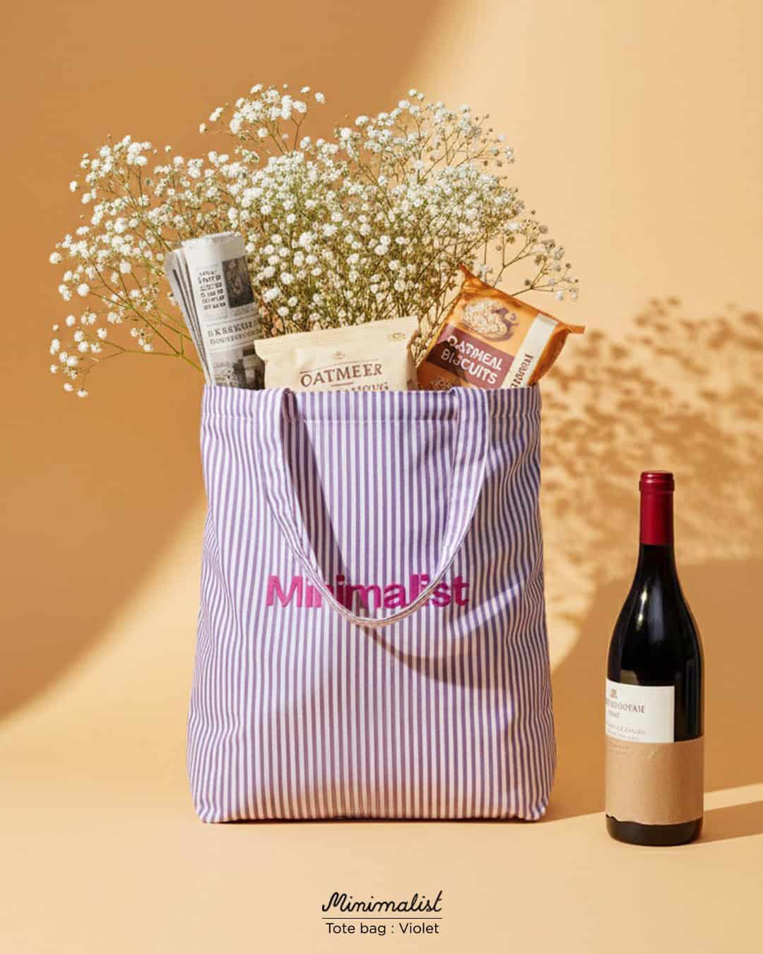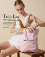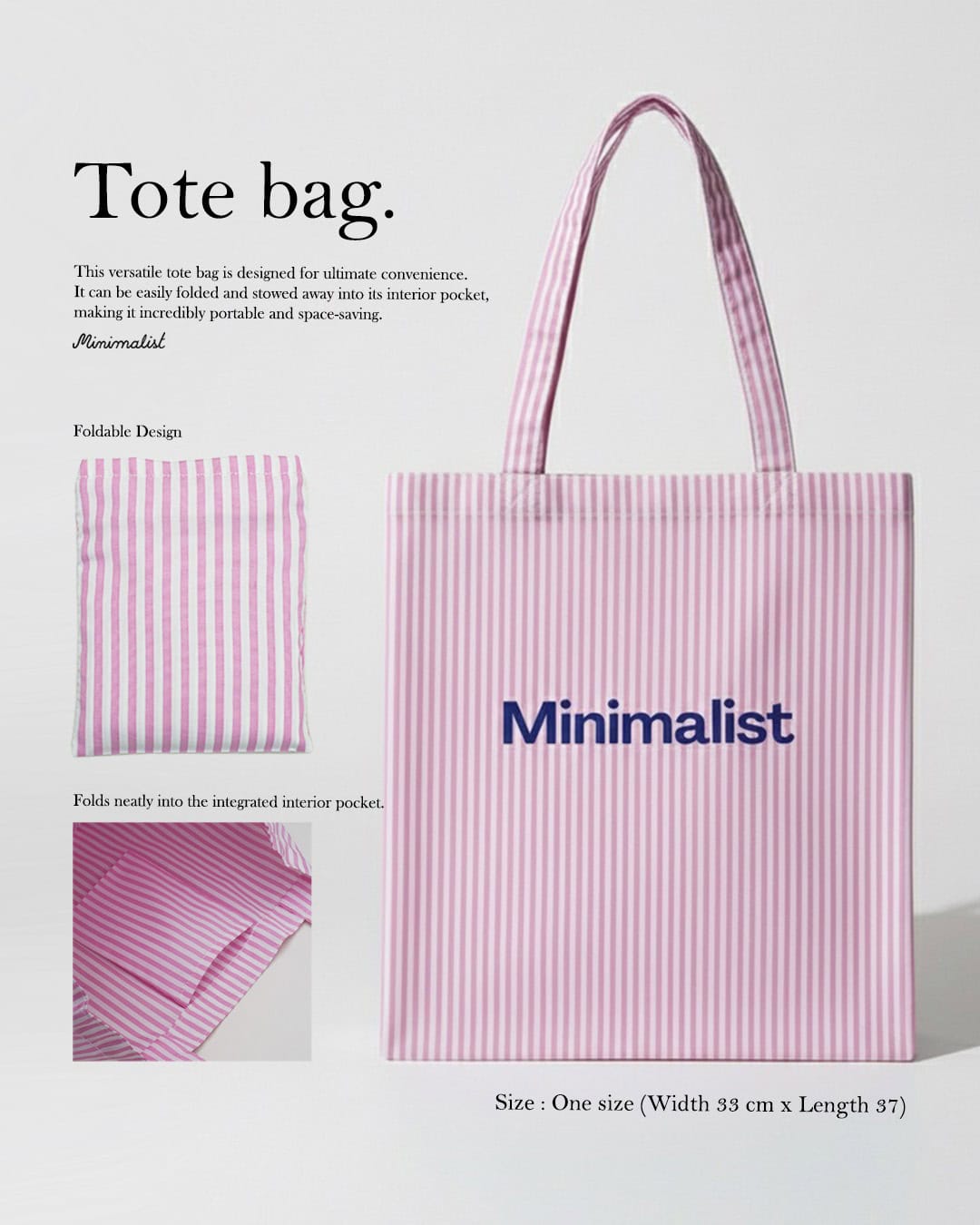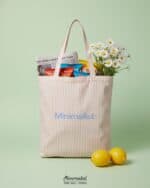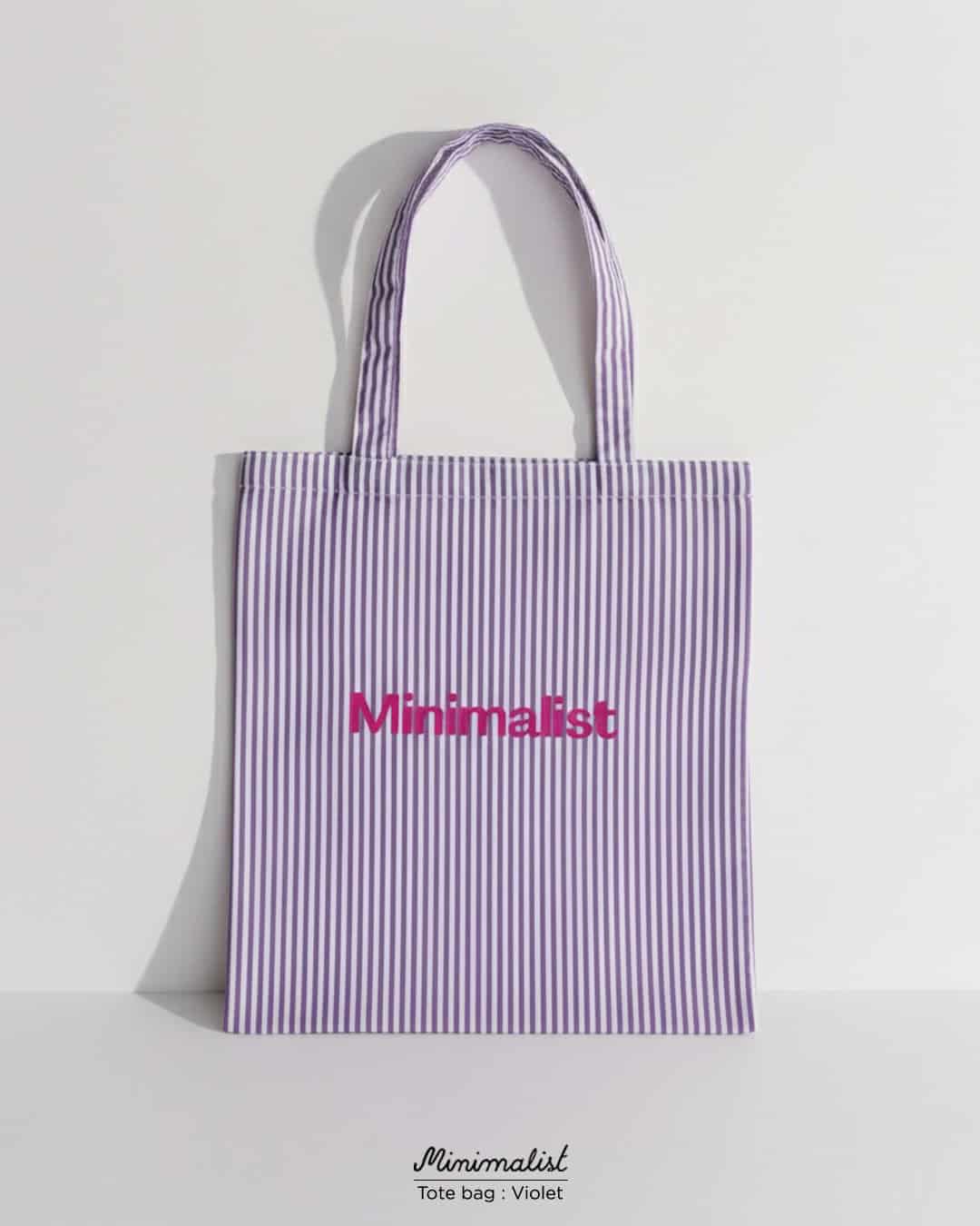 Minimalist Tote bag ถุงผ้าลายทาง พร้อมช่องสำหรับพับเก็บ
