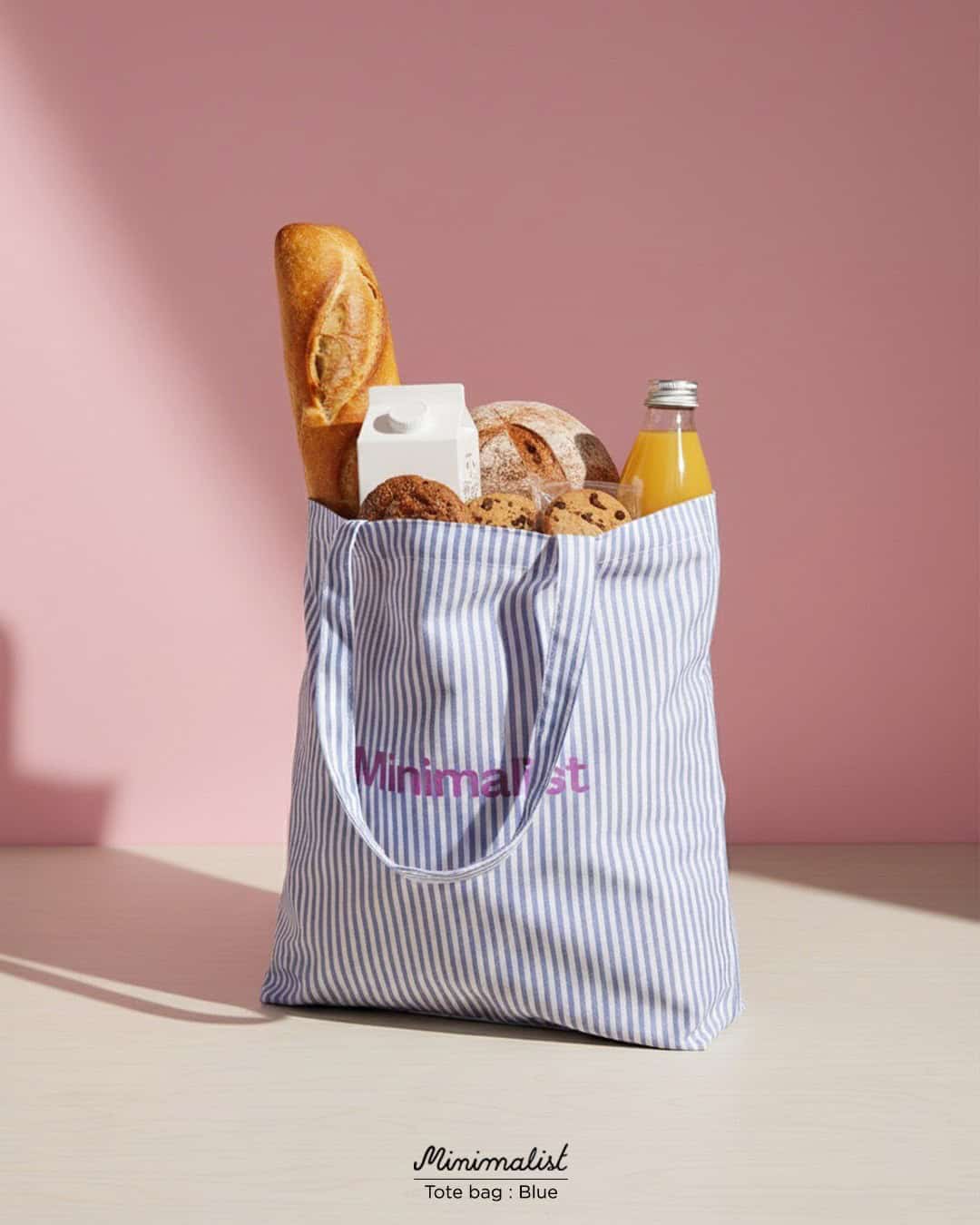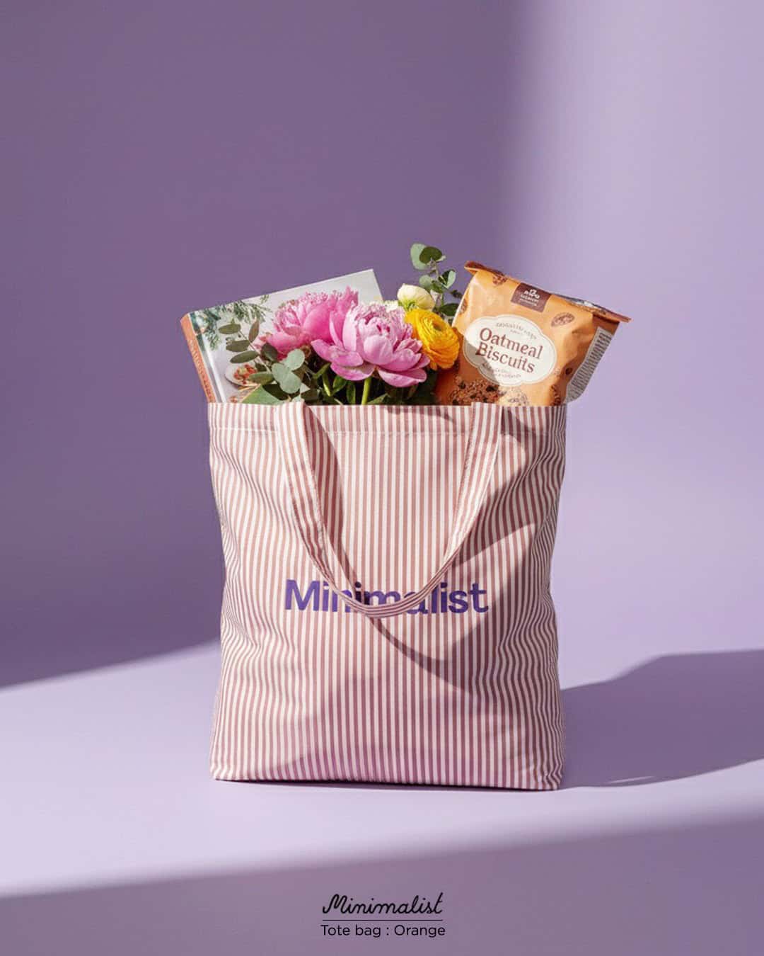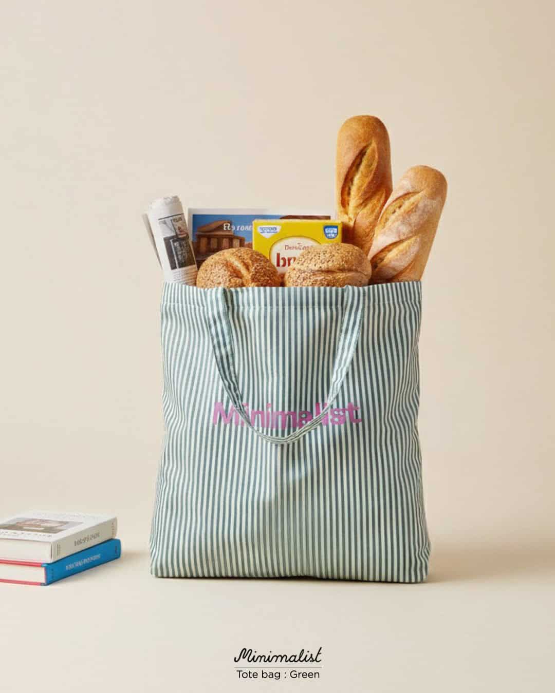 Minimalist Tote bag ถุงผ้าลายทาง พร้อมช่องสำหรับพับเก็บ