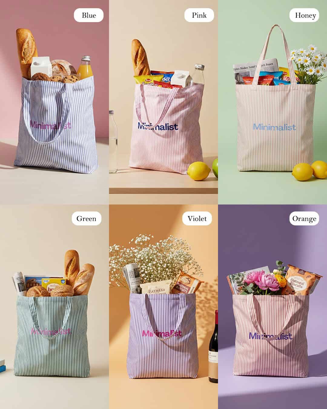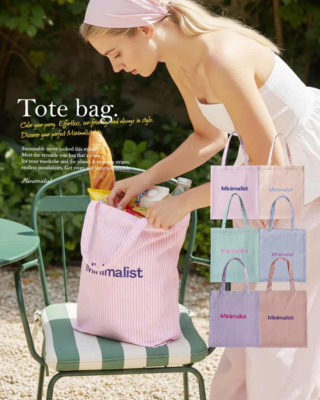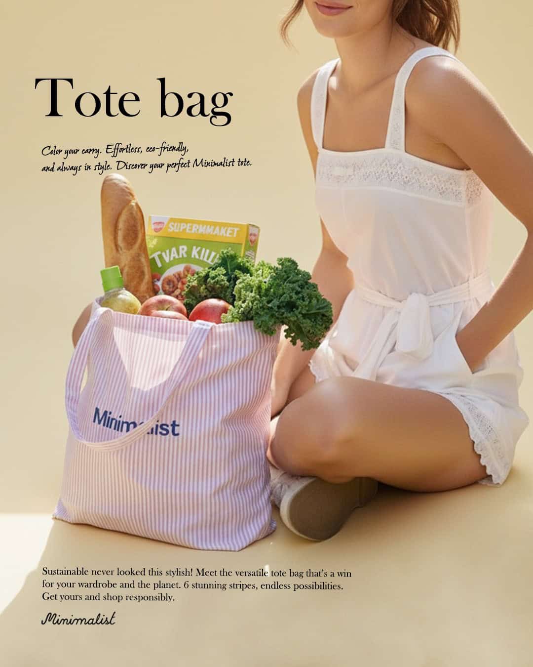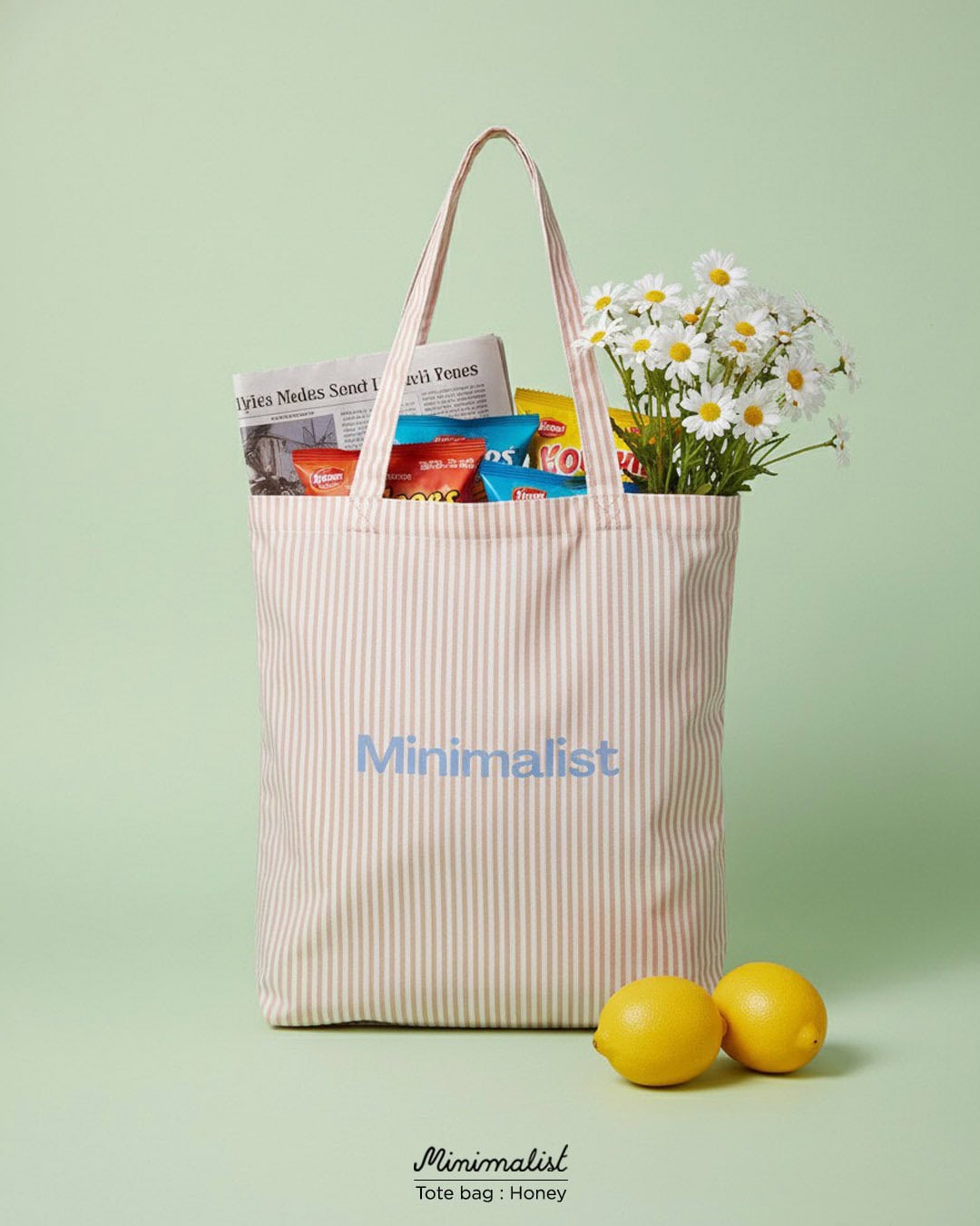 Minimalist Tote bag ถุงผ้าลายทาง พร้อมช่องสำหรับพับเก็บ