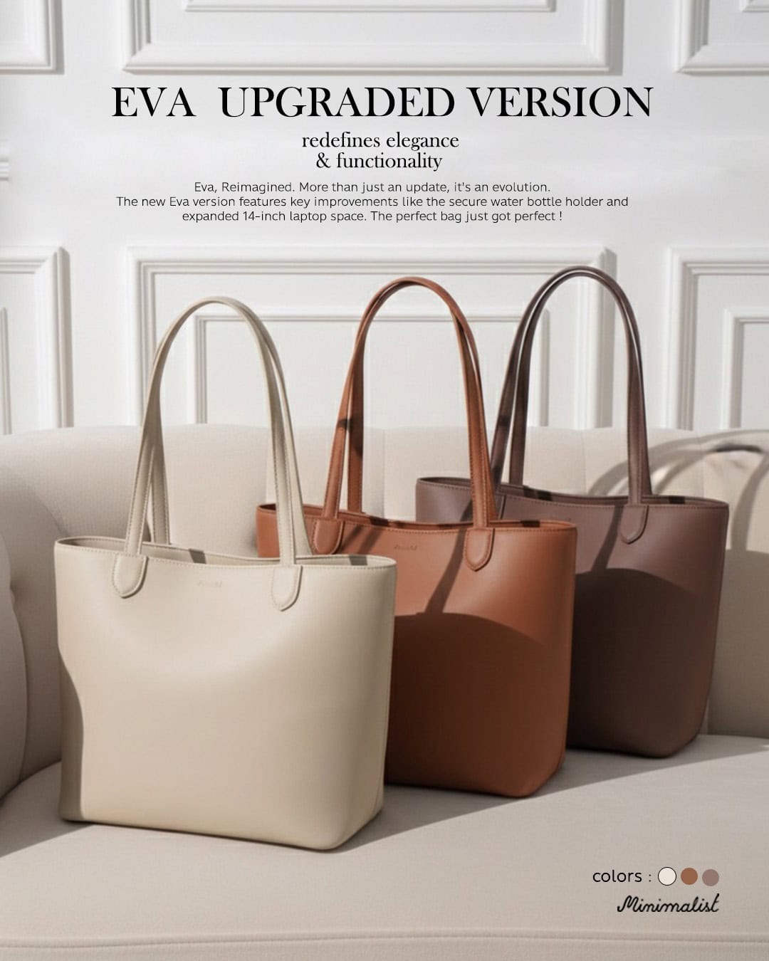 Minimalist กระเป๋าหนังรุ่น Eva tote bag ทน เบา จุ ช่องแบ่งเยอะ หาของง่าย