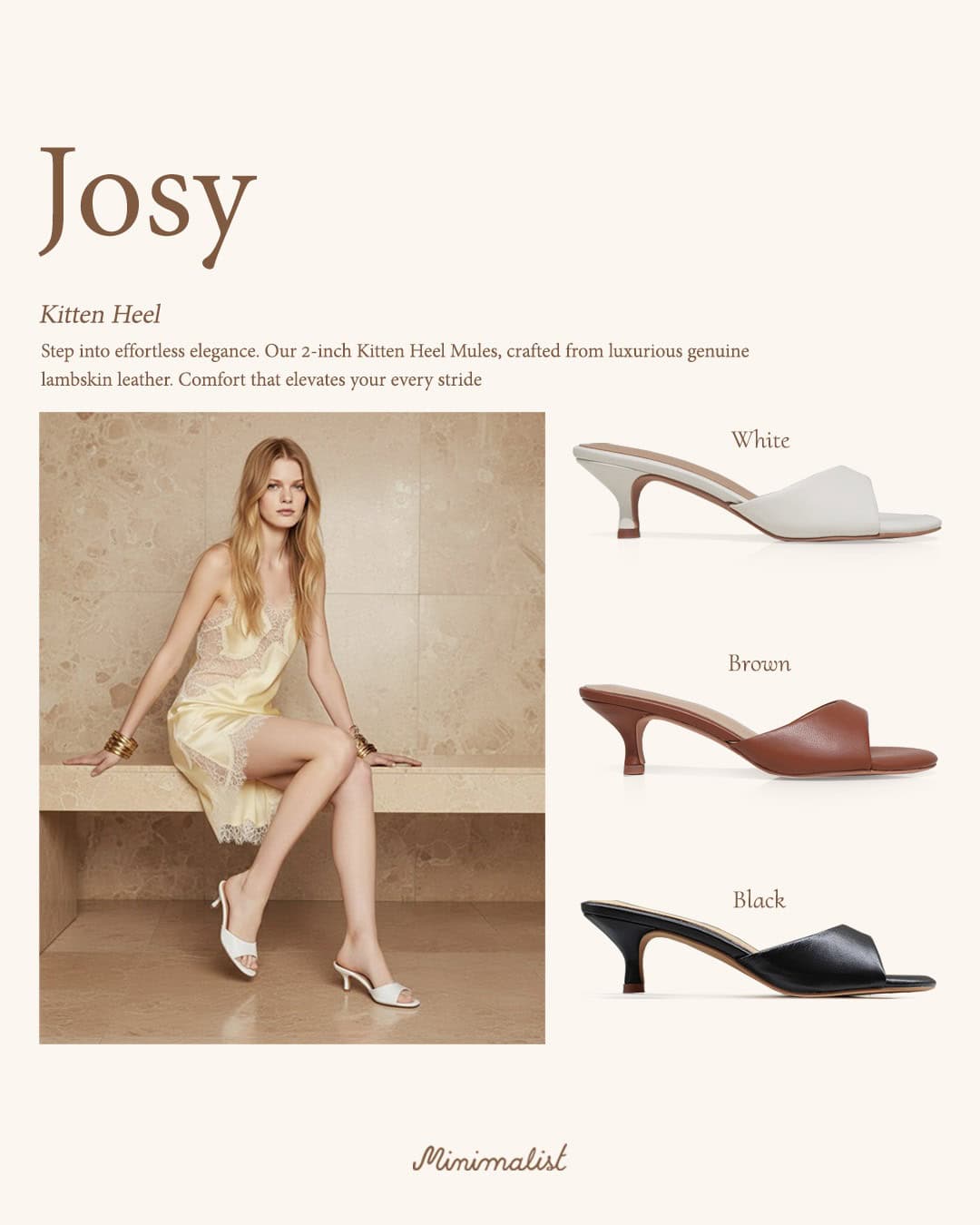Minimalist รองเท้ามีส้นหนังแกะ รุ่น Josy สูง 2 นิ้ว เรียบหรู แมทช์ง่าย ใส่ได้ทุกวัน